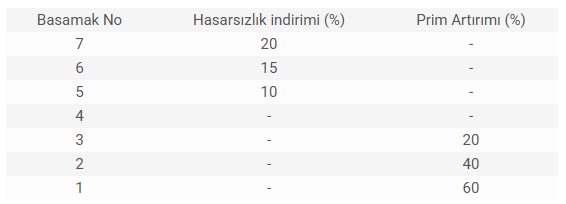 İlk kez sigorta yaptıranlar için prim artırımı ve indirimi içermeyen basamak uygulanır.